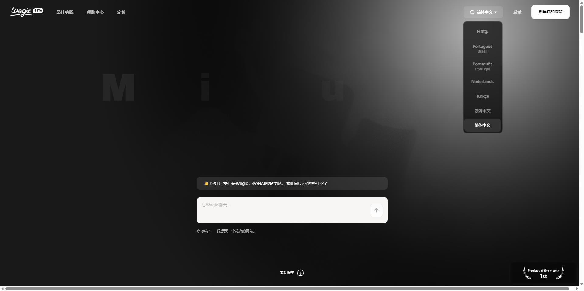• 自然语言交互:用户可以通过自然语言对话的方式与Wegic交流,描述自己的网站需求,Wegic会根据这些描述生成网站设计稿。