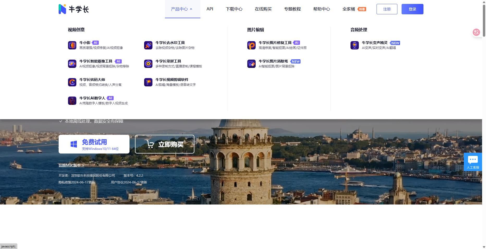牛学长是一款由软牛科技开发的多功能智能多媒体处理平台,基于AI技术,提供视频修复、图片处理、智能抠像、AI数字人等多种功能,广泛应用于自媒体、电商、培训等领域。以下是牛学长的主要功能和特点: