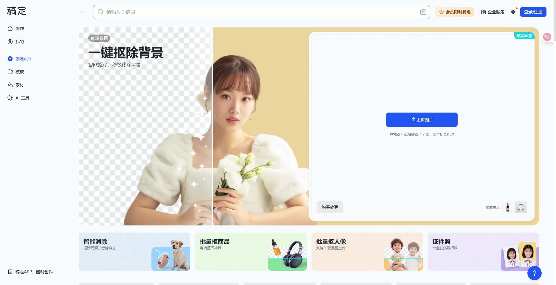 稿定 AI 抠图官网:https://www.gaoding.com/create-design