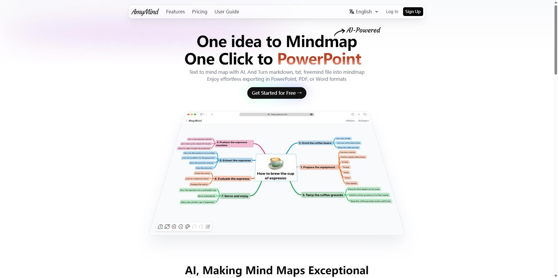 • 文本输入生成:输入关键词或主题,AmyMind 能够快速生成结构化的思维导图,帮助用户快速组织思路。