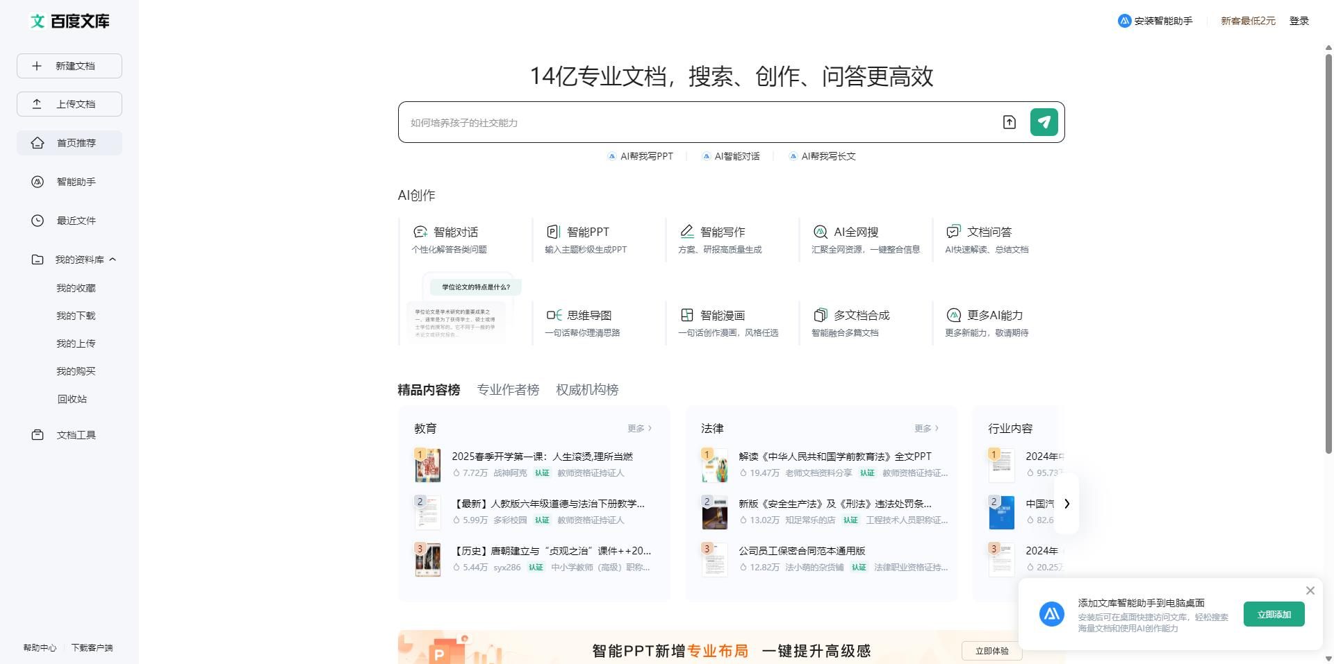 百度文库AI助手官网:https://wenku.baidu.com/?_wkts_=1736413332096