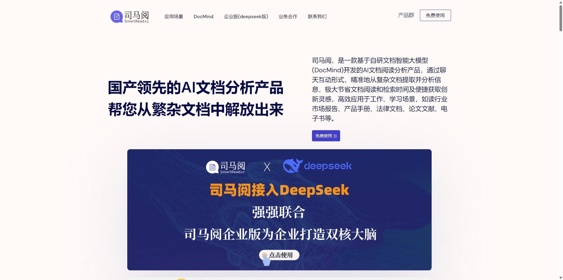 司马阅(SmartRead)是一款基于自研文档智能模型(DocMind)开发的AI文档阅读分析工具,以下是其详细介绍: