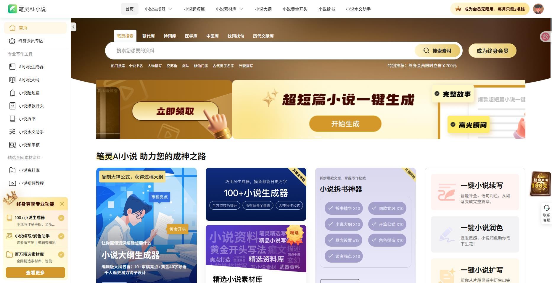 • 丰富素材:涵盖武侠、玄幻、都市等多种题材,提供古代常识、民俗神话资料、写作技巧、遣词造句等内容。